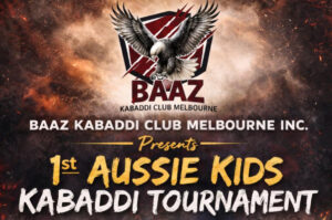 1st Aussie Kids Kabaddi Tournament: Scheduled for 18 April 2026. Organizer: Baaz Kabaddi Club Melbourne Inc..Purpose: To showcase youth talent,
